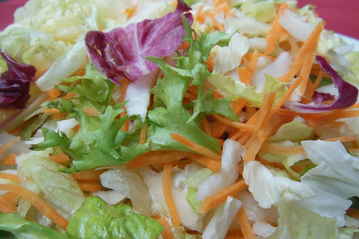 - Grüner gemischter Salat mit verschiedenen Blattsalaten, Karottenstreifen und Weisskraut