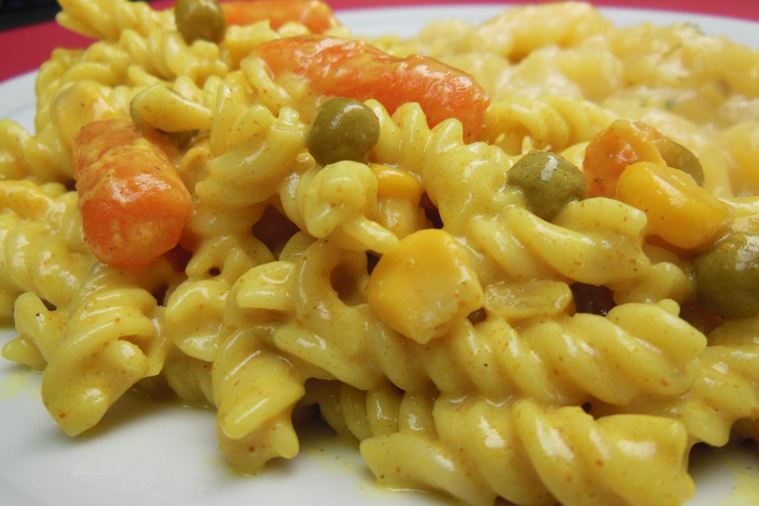 - Frischer Nudelsalat mit Erbsen und Möhren nach Art des Hause
