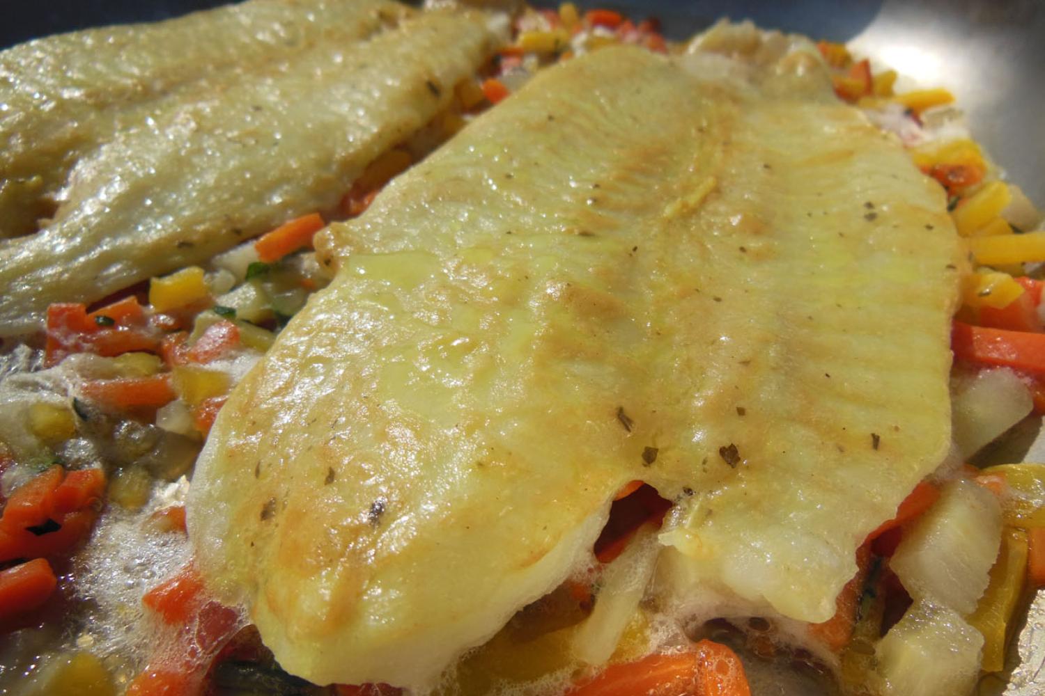 - Pangasiusfilet auf Gemüsebett in Alufolie