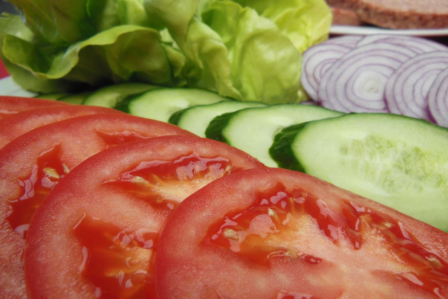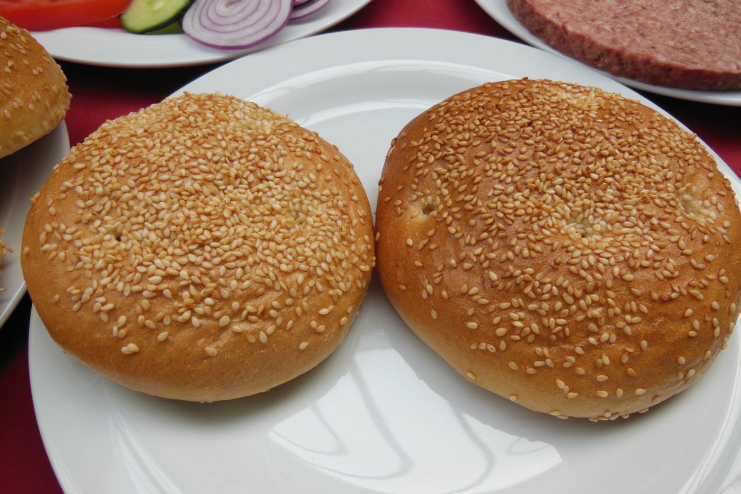 - Hamburger nur mit Rindfleisch, Brötchen,Salat,Zwiebeln,Käse,Gurken und Tomaten