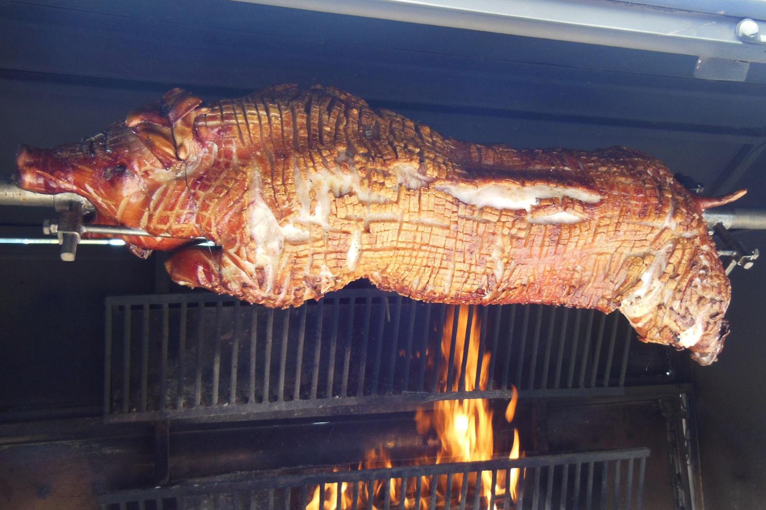 Unser Menü Spanferkel Zünftig ist das kulinarische Highlight unserer Menükarte. Wir kredenzen frisch gegrilltes Spanferkel, knusprig und saftig zubereitet. Ausserdem servieren wir ebenfalls frisch gegrillten Putenspießbraten, Lammkeule, Rindfleisch und geschmortes Pangasiusfilet für die nicht Fleisch Esser. Dazu reichen wir Kartoffelknödel an dunkler Biersoße, Folienkartoffeln mit leckerem und frisch zubereitetem Kräuter-Quark-Dip, sowie hausgemachten Kartoffelsalat nach fränkischer Art. Ihre Gäste können ausserdem aus Karottensalat sowie hausgemachtem Spitzkrautsalat auswählen, zusammen grünen gemischten Salat mit frischem Joghurt-Kräuter-Dressing . Alle Gerichte werden vor Ort mit unserem Buchenholzfeuer gegrillt, auch die Beilagen werden direkt vor Ort zubereitet. Sie benötigen übrigens keine Küche: Unsere Grills und Grillanhänger beinhalten alles, was wir für die Zubereitung benötigen.