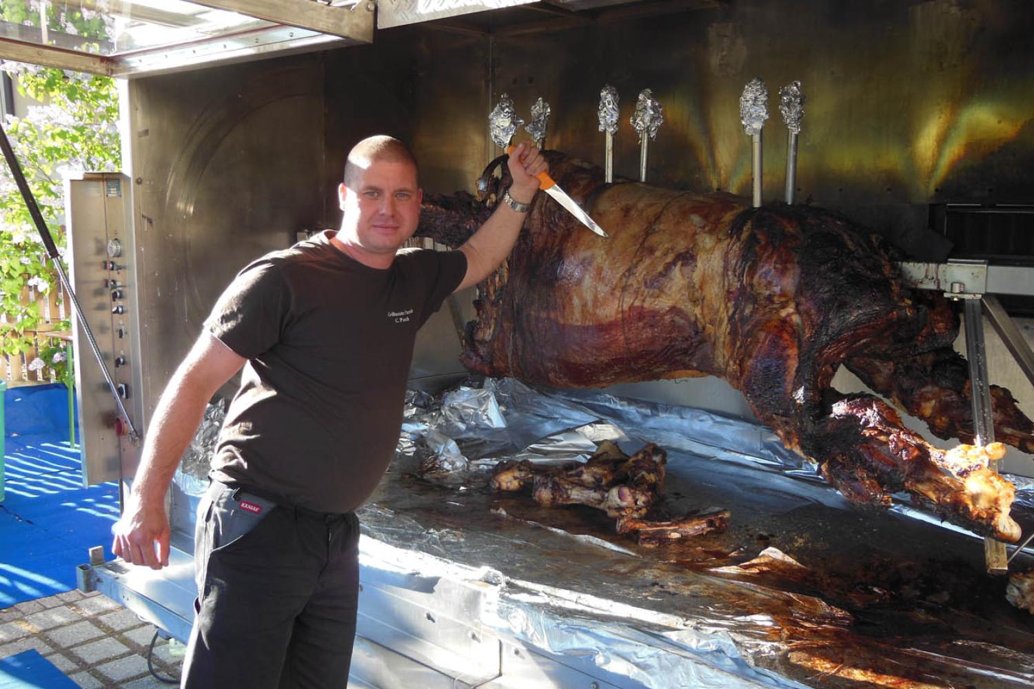 Mit unserem Catering für Firmenfeiern setzen Sie ein echtes Highlight: Ein ganzes Ochsengrillen ist nicht nur kulinarisch beeindruckend, sondern auch ein spektakulärer Blickfang für Mitarbeiter, Kunden und Gäste. Ab 250 Personen kommen wir mit unserem professionellen Equipment direkt zu Ihnen vor Ort. Der Ochse wird über viele Stunden frisch gegrillt, bis das Fleisch zart und die Kruste perfekt knusprig ist – ein Live-Erlebnis, über das man spricht.