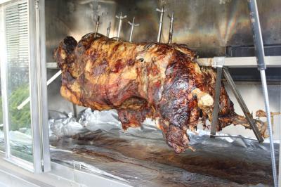 Knuspriges Spanferkel direkt vom Grill, frisch und rustikal zubereitet – ein Highlight für Firmenfeiern, Hochzeiten und Familienfeste.